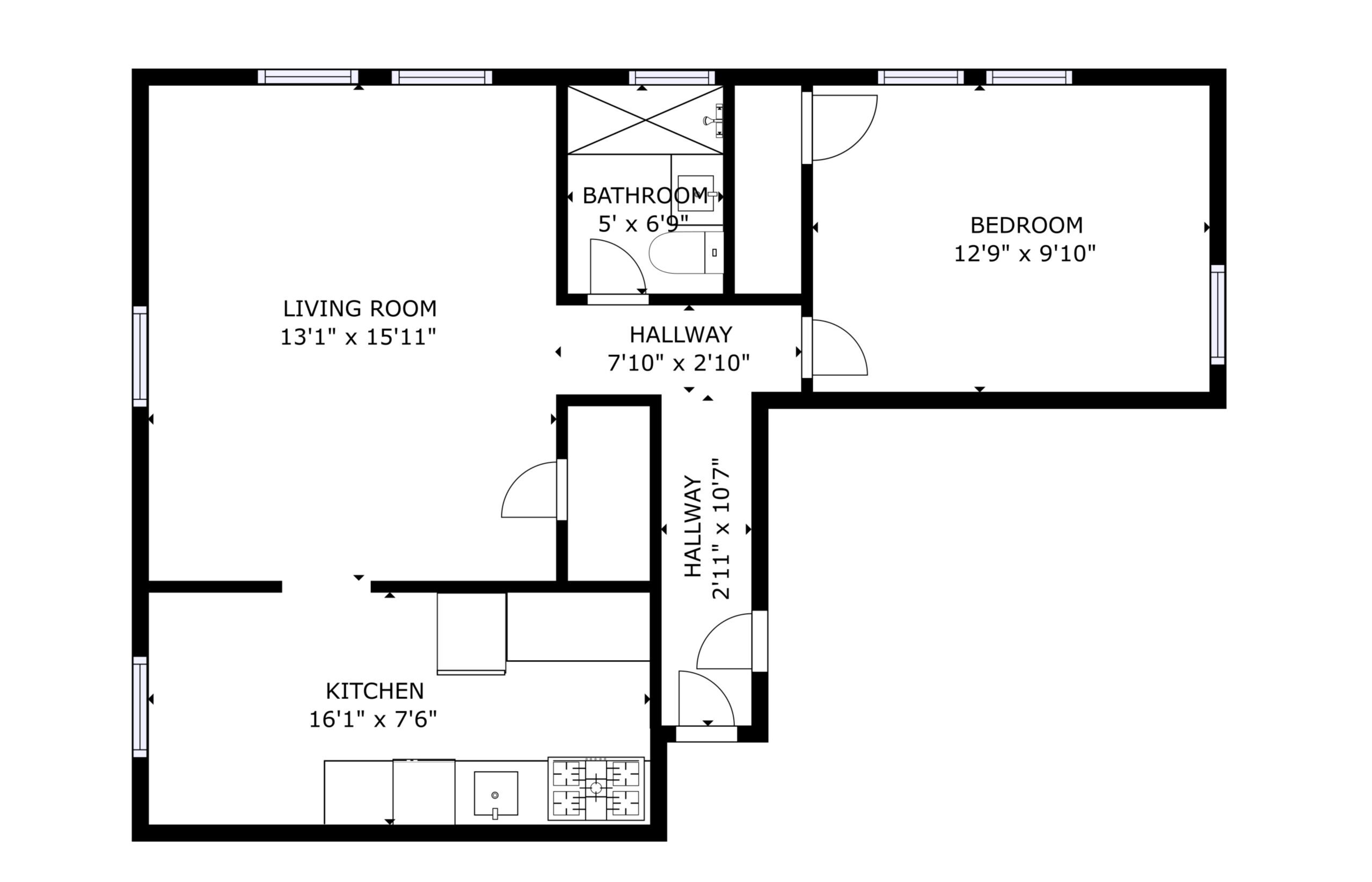 - 1 Bedroom, 1 Bathroom Apartment